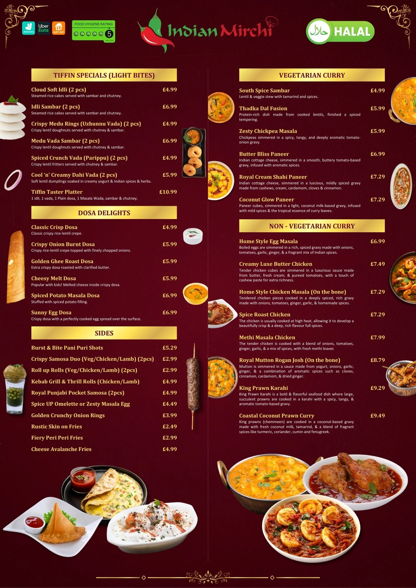 Explore the full menu at Indian Mirchi, featuring a wide variety of authentic Indian dishes that showcase the richness and depth of traditional Indian flavours. From classic favourites to carefully crafted house specialties, every dish reflects the quality, care, and passion that go into our cooking.